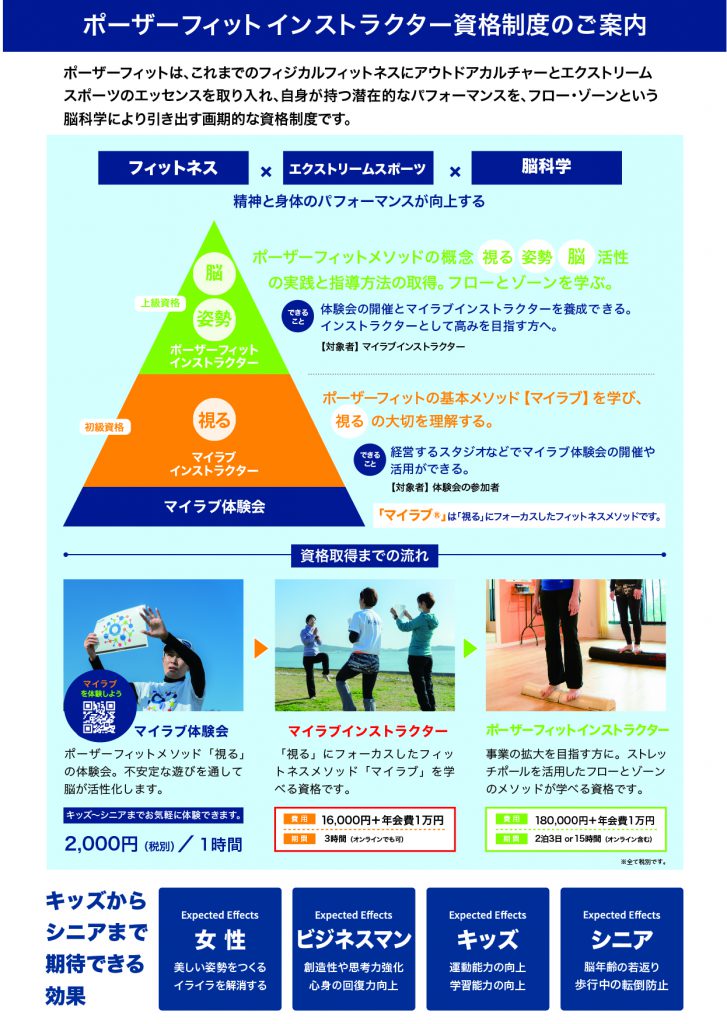 ポーザーフィットの資格制度のご案内チラシを制作させていただきました。